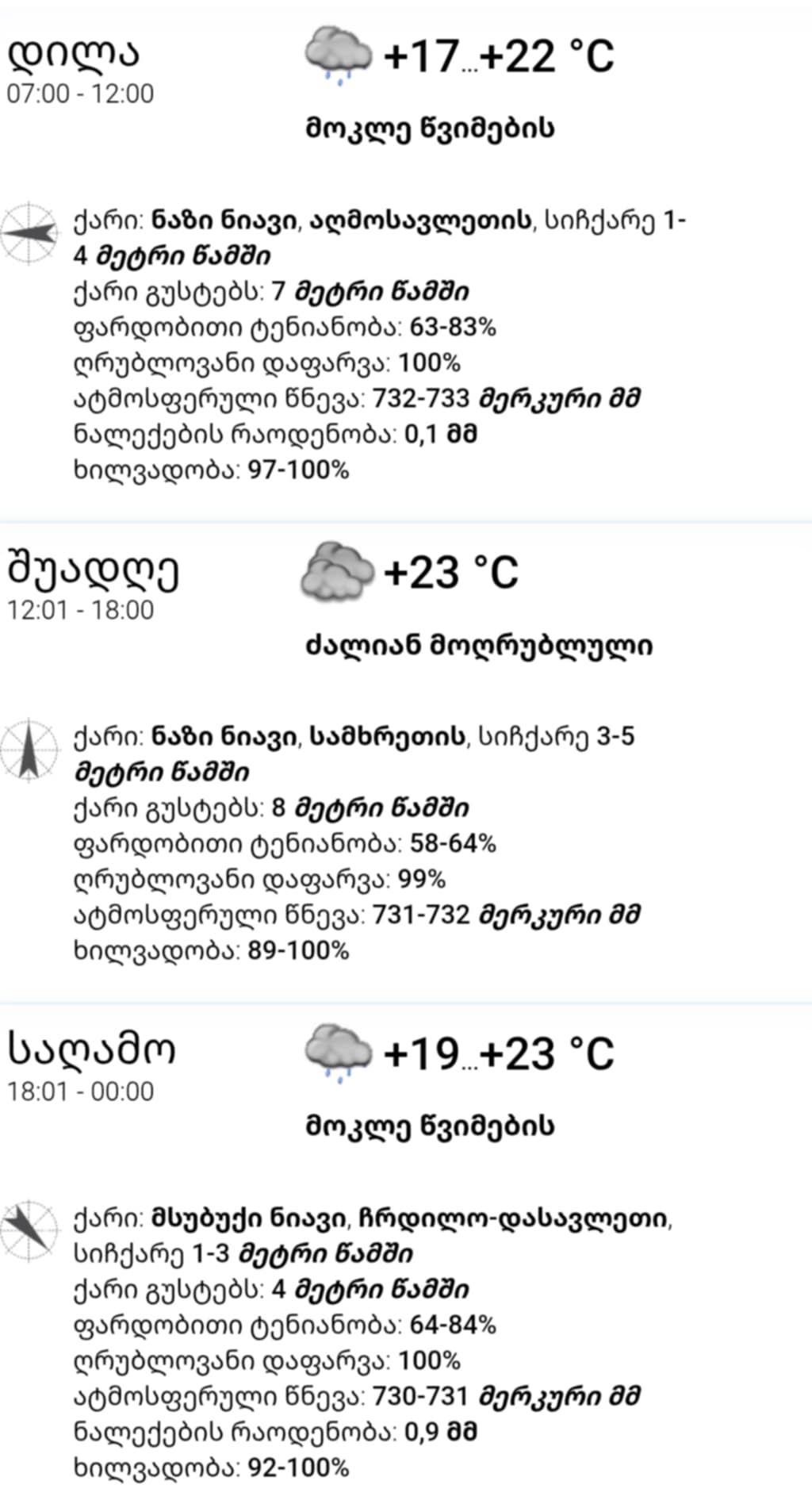 ამინდიამინდის პროგნოზი 28,05,2025 Region News!მაისი 28, 202501 mins Share this: Share on X (Opens in new window) X Share on Facebook (Opens in new window) Facebook Like this:Like Loading... პოსტის ნავიგაცია Previous: საქართველოს კულტურის მინისტრმა თინათინ რუხაძემ მონაწილეობა მიიღო საქართველოს საგარეო საქმეთა სამინისტროს ორგანიზებით, დიასპორის დღისადმი მიძღვნილ ფორუმში „დიასპორა სამშობლოსთვის – ტრადიცია, ერთიანობა, განვითარება“Next: ვალუტის კურსი 28,05,2025 Leave a ReplyCancel reply