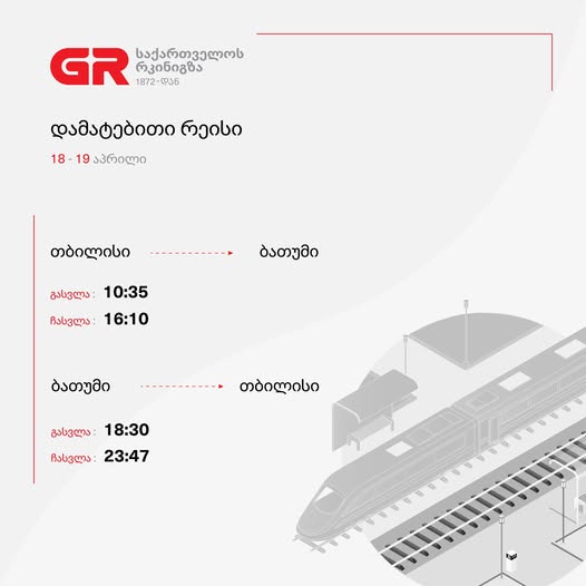 ბოლო სიახლეებიაღდგომის დღესასწაულთან დაკავშირებით, საქართველოს რკინიგზა 18 და 19 აპრილს თბილისი-ბათუმი-თბილისის მიმართულებით რეისებს ამატებს Region News!აპრილი 16, 202501 mins Share this: Share on X (Opens in new window) X Share on Facebook (Opens in new window) Facebook Like this:Like Loading... პოსტის ნავიგაცია Previous: კესარია აბრამიძის მკვლელობაში ბრალდებულ ბექა ჯაიანს უვადო პატიმრობა მიესაჯაNext: დალუქულია დადგენილ რეგულაციასთან შეუსაბამოდ წარმოებული დაახლოებით 2,5 ტონა პლასტიკის პარკი. 14 სახეობის პარკის ნიმუში კი, დეგრადაციის ხარისხისა და მძიმე მეტალების შემცველობის დადგენის მიზნით, გადაგზავნილია შესაბამის ლაბორატორიაში Leave a ReplyCancel reply