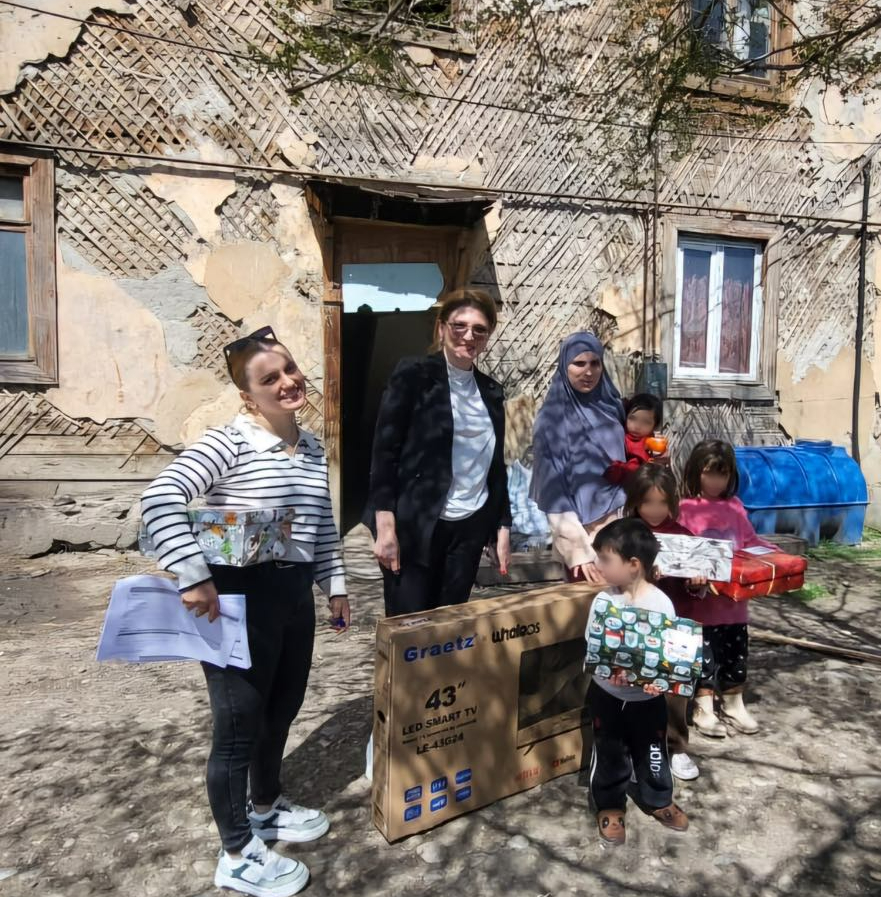 გარდაბნის მუნიციპალიტეტის მერიის ჯანმრთელობის, სოციალური, ბავშვის უფლებების დაცვისა და მხარდაჭერის სამსახურის განყოფილებიდან შემოსული კორესპონდენციის საფუძველზე, მუნიციპალიტეტის ტერიტორიაზე მცხოვრებ ბავშვიან ოჯახებს, რომელთაც აქვთ მძიმე საყოფაცხოვრებო პირობები, საჩუქრად ტელევიზორები გადაეცათ.