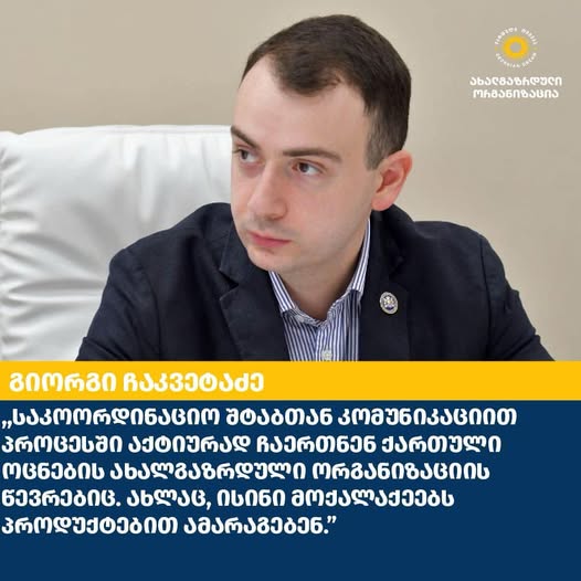 გიორგი ჩაკვეტაძე I Giorgi Chakvetadze:,,საკოორდინაციო შტაბთან კომუნიკაციით პროცესში აქტიურად ჩაერთნენ ,,ქართული ოცნების” ახალგაზრდული ორგანიზაციის წევრებიც. ახლაც, ისინი მოქალაქეებს პროდუქტებით ამარაგებენ.