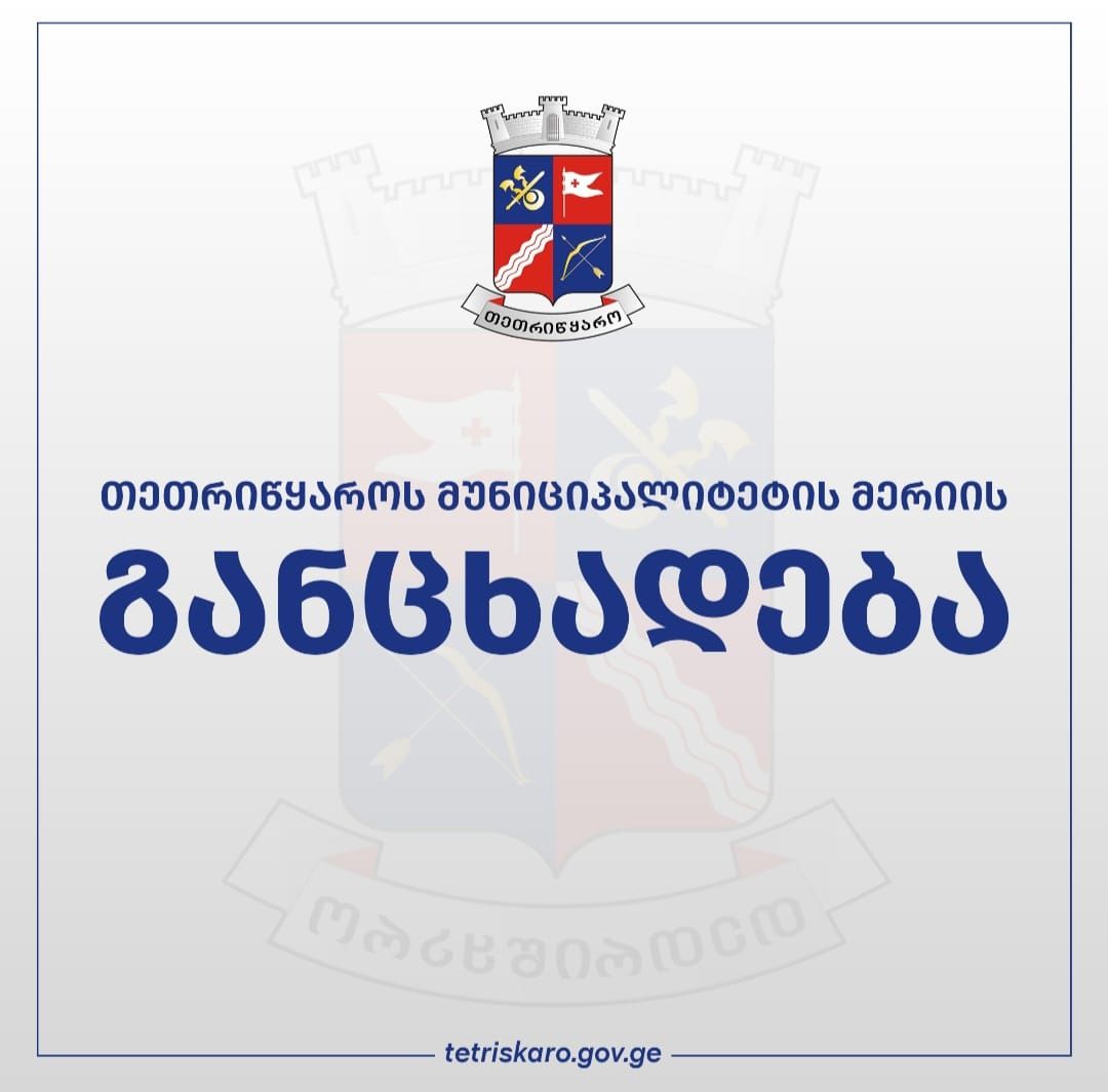 თეთრიწყაროს მუნიციპალიტეტის მერია განცხადებას ავრცელებს