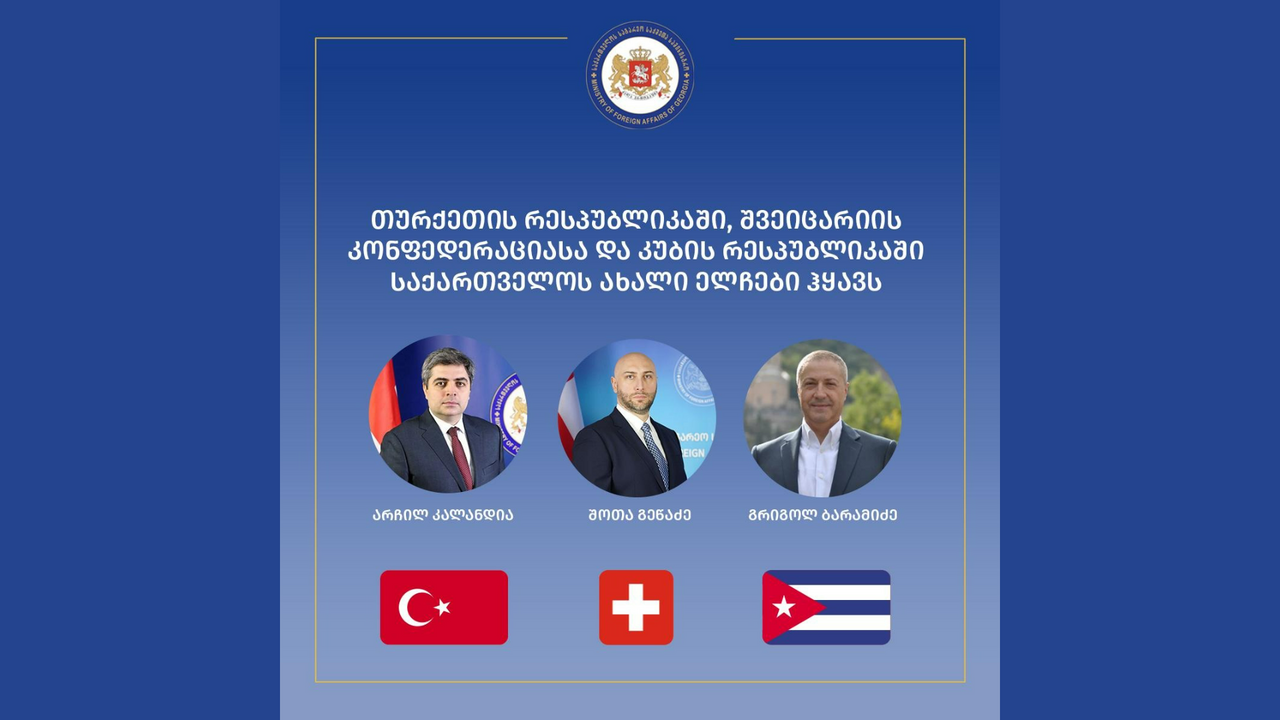 თურქეთის რესპუბლიკაში, შვეიცარიის კონფედერაციასა და ლიხტენშტაინის სამთავროში, კუბის რესპუბლიკაში საქართველოს ახალი ელჩები დაინიშნენ.
