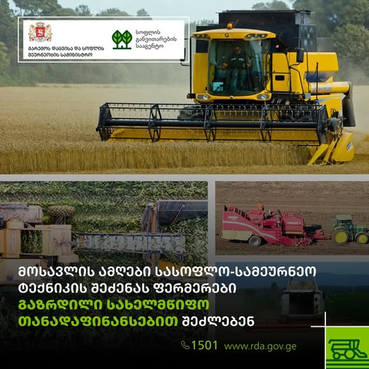მოსავლის ამღები სასოფლო-სამეურნეო ტექნიკის შეძენას ფერმერები გაზრდილი სახელმწიფო თანადაფინანსებით შეძლებენ