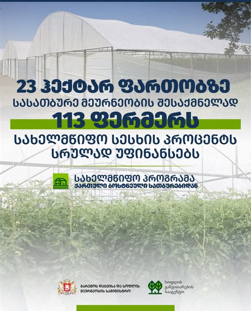 გარემოს დაცვისა და სოფლის მეურნეობის სამინისტროს სოფლის განვითარების სააგენტოს პროგრამას – „ქართული ბოსტნეული სათბურებიდან“, რომელსაც 2024 წლიდან ახორციელებენ, 113 ბენეფიციარი ჰყავს.