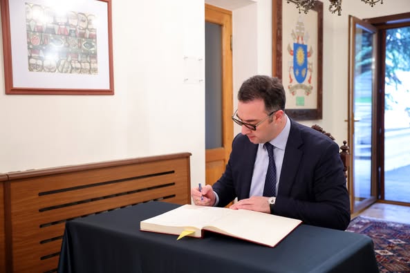რომის პაპის, ფრანცისკეს გარდაცვალებასთან დაკავშირებით საქართველოში წმინდა საყდრის სადესპანოში გახსნილ სამძიმრის წიგნში დავით სონღულაშვილმა ჩანაწერი გააკეთა