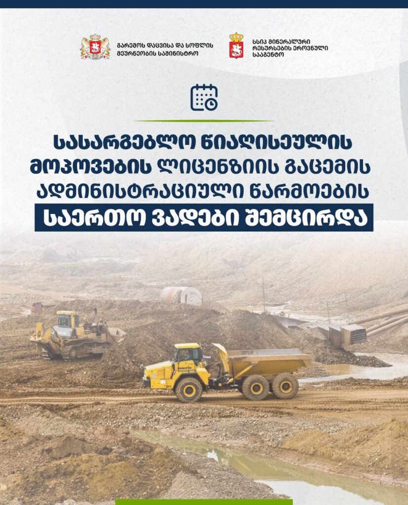 ✅ გარემოს დაცვისა და სოფლის მეურნეობის სამინისტროს ინფორმაციით, ადმინისტრაციული ბარიერების შემცირების და სერვისების ხარისხის გაუმჯობესების მიზნით, სასარგებლო წიაღისეულის მოპოვების ლიცენზიის გაცემის პროცესი მნიშვნელოვნად გამარტივდა.