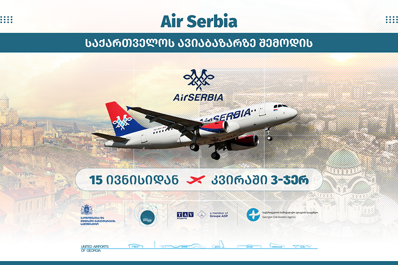 15 ივნისიდან, საქართველოს ავიაბაზარზე, ახალი ევროპული ავიაკომპანია Air Serbia შემოდის. აქტიური მოლაპარაკებები საქართველოს აეროპორტების გაერთიანებამ სერბეთის ფლაგმანთან წარმატებით დაასრულა.