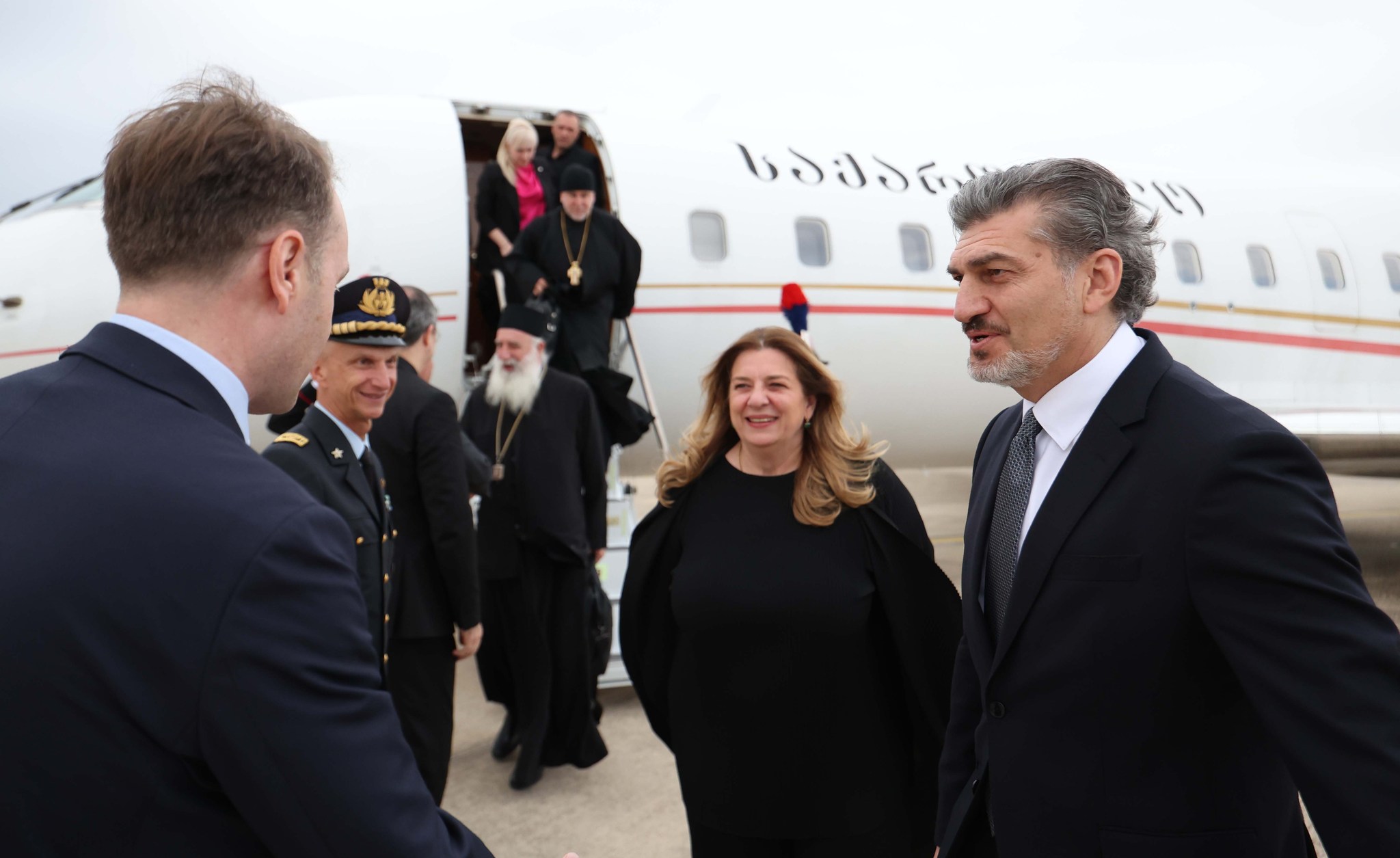 საქართველოს პრეზიდენტთან ერთად, დელეგაციაში ასევე იმყოფებიან, საქართველოს საგარეო საქმეთა მინისტრი მაკა ბოჭორიშვილი, ზუგდიდისა და ცაიშის ეპარქიის მმართველი, საქართველოს საპატრიარქოს საგარეო ურთიერთობების განყოფილების თავმჯდომარე, მიტროპოლიტი გერასიმე და თბილისის სასულიერო აკადემიისა და სემინარიის რექტორი, სიონის საკათედრო ტაძრის წინამძღვრის მოადგილე, პროტოპრესვიტერი გიორგი ზვიადაძე.
