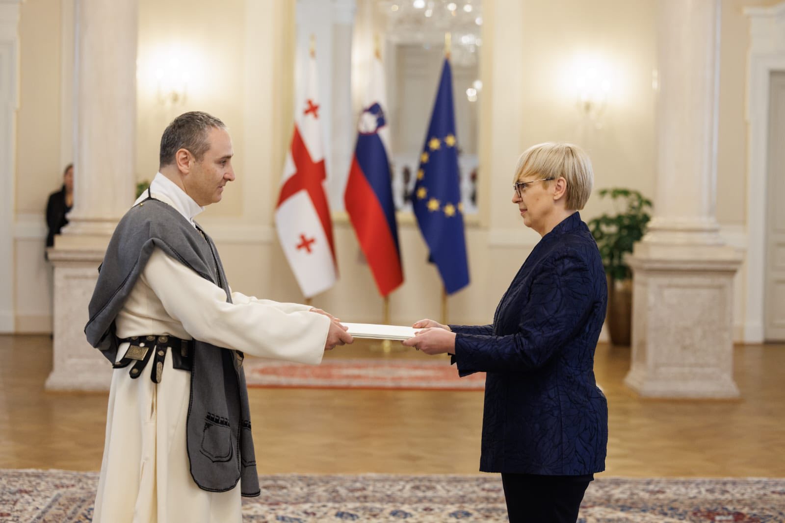 სლოვენიის რესპუბლიკაში საქართველოს საგანგებო და სრულუფლებიანმა ელჩმა კონსტანტინე სურგულაძემ, სლოვენიის რესპუბლიკის პრეზიდენტს ნატაშა პირც მუსარს რწუნებათა სიგელები გადასცა