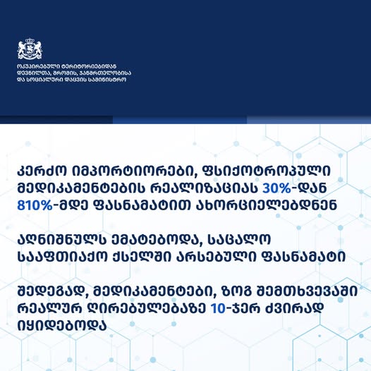 სააფთიაქო ქსელები და სამედიცინო დაწესებულებები სრულად მომარაგებულია, ფასები სისტემურად მოწესრიგდა, ხოლო მათი გაცემა დაშვებულია მხოლოდ ექიმის დანიშნულებით. დარღვევის შემთხვევაში სამინისტროს კანონით განსაზღვრული მკაცრი რეაგირება ექნება.