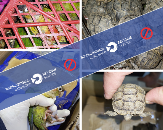 ფინანსთა სამინისტროს შემოსავლების სამსახურის ,,ყაზბეგის” საბაჟო გამშვებ პუნქტში მებაჟე ოფიცრებმა ეჭვის საფუძველზე, უცხო ქვეყნის მოქალაქის მართვის ქვეშ არსებული სატვირთო ავტომობილის დეტალური დათვალიერების შედეგად, მისაბმელსა და სალონში მოწყობილ სათავსოებში, მალულად განთავსებული, „გადაშენების საფრთხის წინაშე მყოფი ველური ფლორისა და ფაუნის სახეობებით საერთაშორისო ვაჭრობის შესახებ” კონვენციის (CITES) დანართებში შეტანილი 56 ცალი ცოცხალი კუ და 13 ცალი თუთიყუში აღმოაჩინეს.