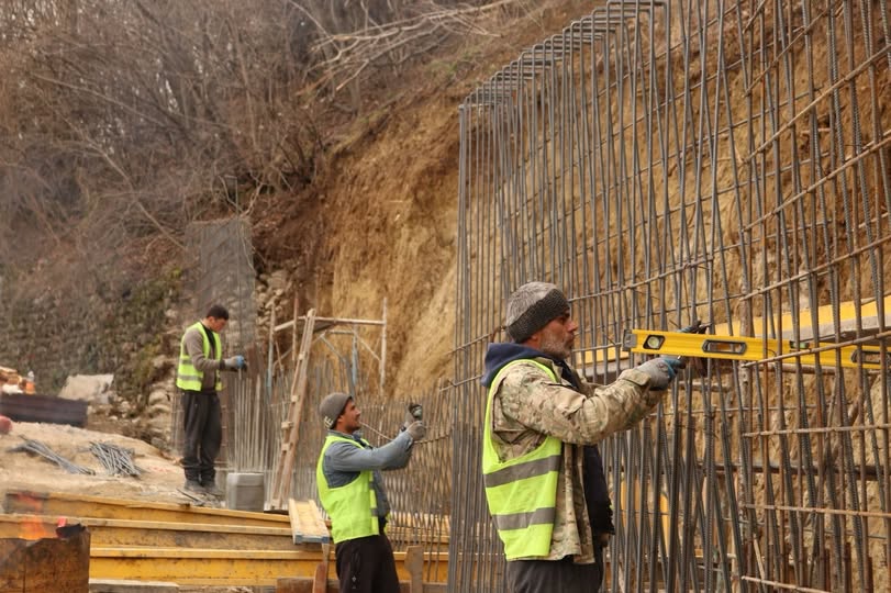 ამ ეტაპზე, რკინა-ბეტონის საყრდენი კედლის მოწყობა მიმდინარეობს