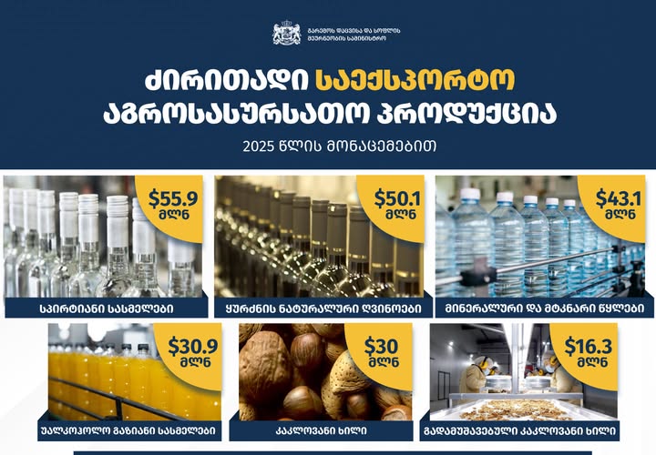 2025 წლის პირველი სამი თვის მდგომარეობით, მნიშვნელოვნად გაიზარდა კარტოფილის, კაკლოვანი ხილის და გადამუშავებული კაკლოვანი ხილის ექსპორტი
